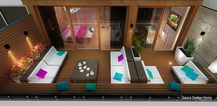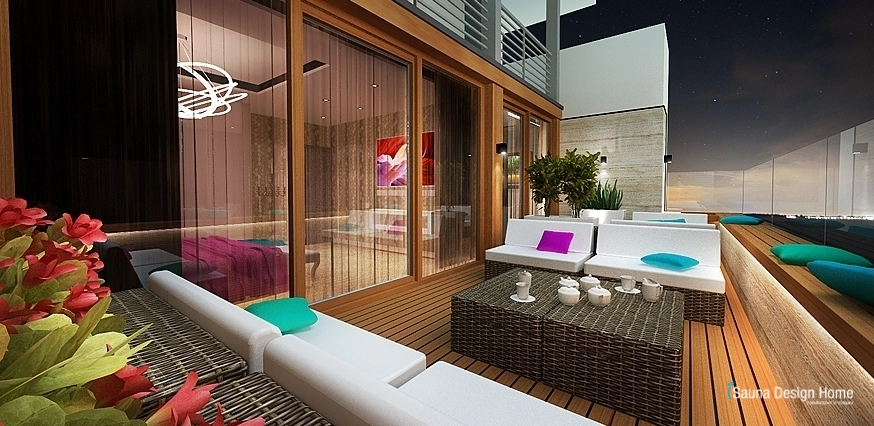 Klenotom bytu je terasa, ktorá je rozdelená s moderným ratonovým nábytkom. Terasa zabezpečuje naraz vonkajšiu funkciu pre spáľňu i detskú izbu.