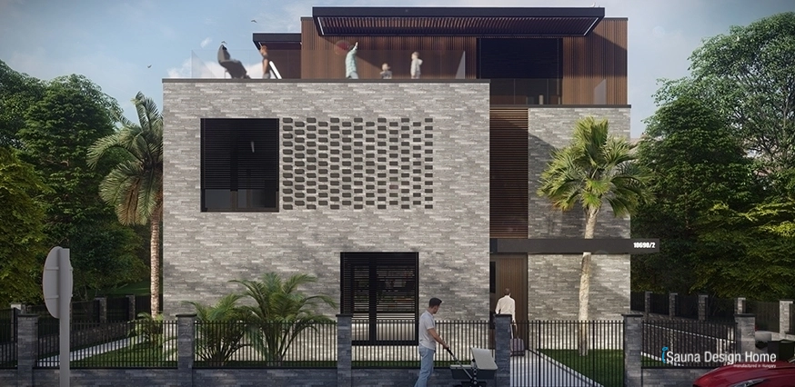 Na hornej privátnej terase bolo cieľom vykúzliť priestor, v ktorom sa dá žiť v každom ročnom období. Unikátny hliníkový systém pergoly je moderným, estetickým a funkčným dizajnovým prvkom. Príjemným a estetickým pohľadom je harmónia externej sauny na mieru s drevenými povrchmi fasády budovy. Jedinečnosť textúry dreva ešte viac zdôrazňuje unikátnosť stavby.