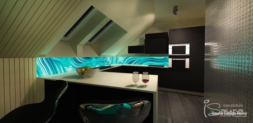 Pri zabudovaní podkrovia sa objavia jedinečné povrchové úpravy: Špeciálne kalené sklenené steny s potlačou, ktoré sú podsvietené s RGB a s LED pásmi teplej bielej farby, jedinečné čalunené kožené obloženie stien, vďaka ktorým sa stanú miestnosti útulnými. Špeciálne prírodné drevené povrchy svojou elegantnosťou a jedinečnou nádherou zvyšujú krásu bytu.