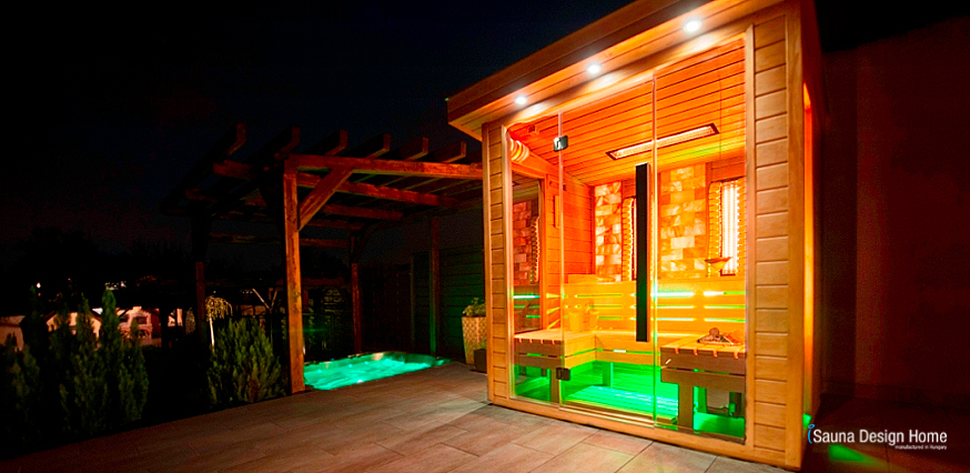 Exteriérová sauna – kombinovaná sauna a himalájska soľná terapia je oblúbeným riešením domácej sauny.