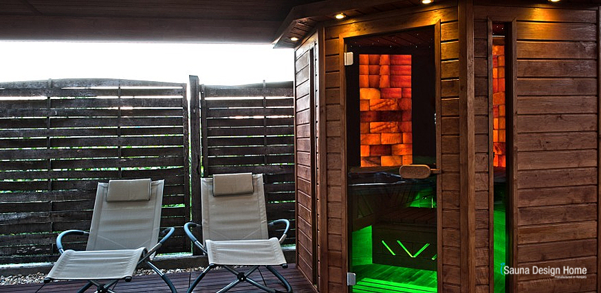 Exteriérová wellness záhradná sauna, sauna domček môže obsahovať všetky prvky čo je potrebné k domácému wellness zážitku.