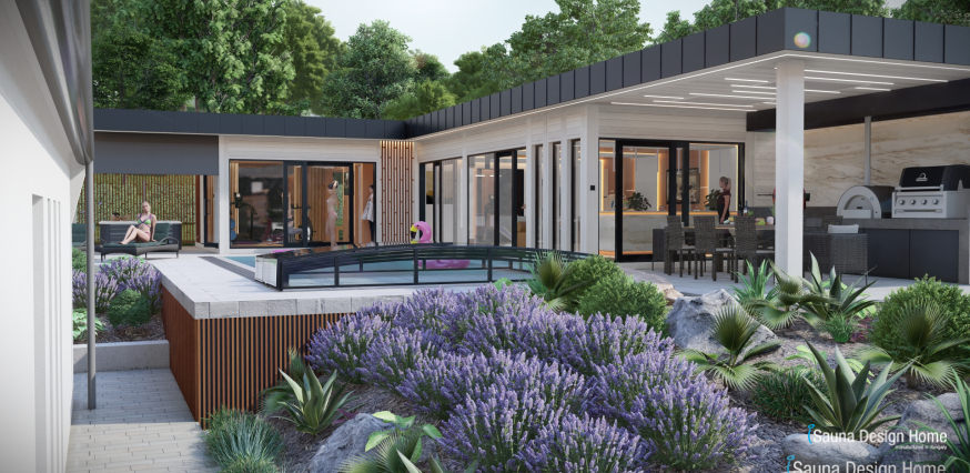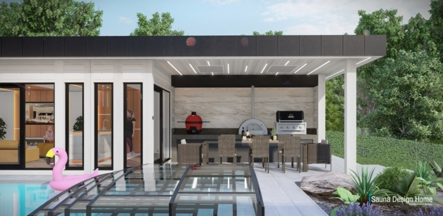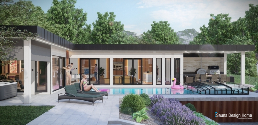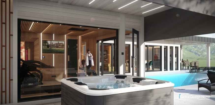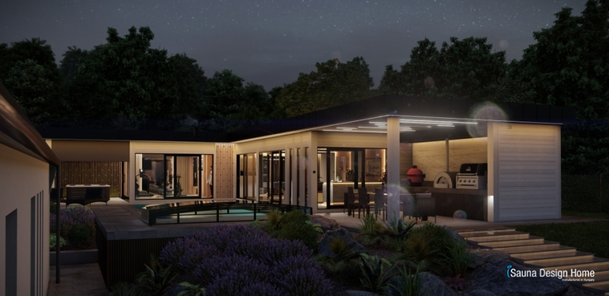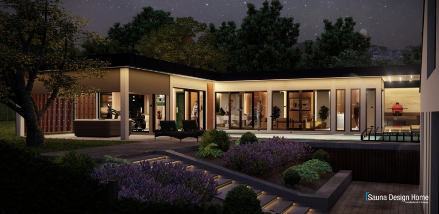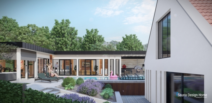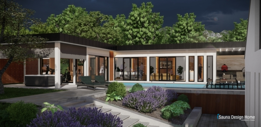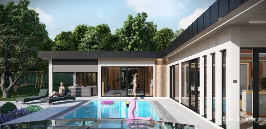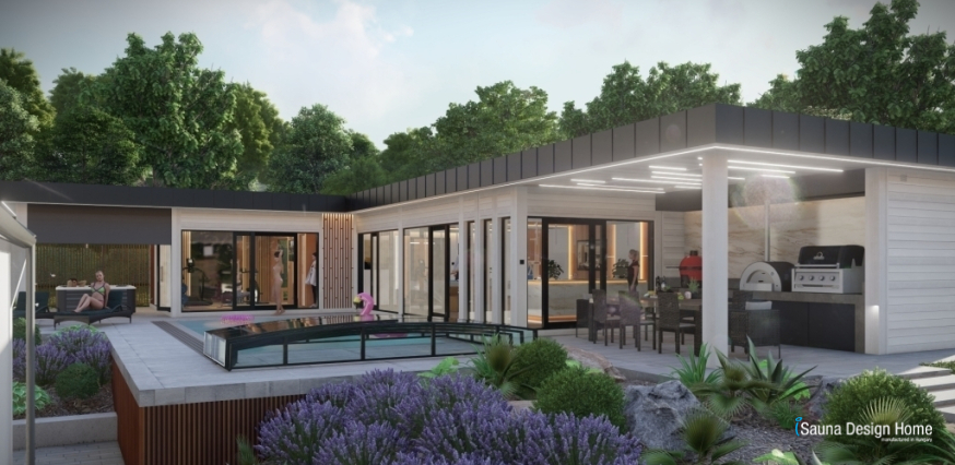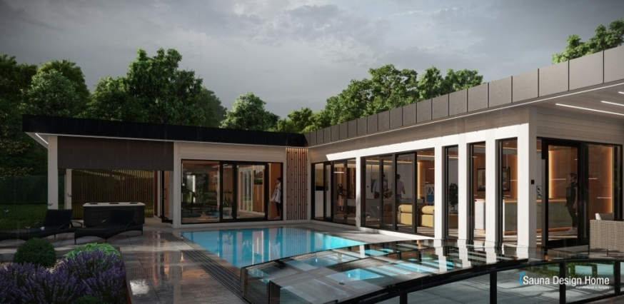 Na konštrukciu fasády sa použilo drevo z kanadského červeného cédra, pričom na zákazku bola vyvinutá technológia, ktorá zabezpečila, že povrch bol upravený tak, aby odrážal špecifickú víziu klienta. Tento exteriér bol dokonale orámovaný existujúcimi oknami v objekte, ktoré sa odrazili v nami postavenom objekte. Moderné technológie sme skombinovali s autentickými dizajnovými žalúziami z masívneho dreva a otvorené priestory a modulárna konštrukcia prémiového masážneho bazéna Villeroy & Boch novej generácie boli chránené elektrickým systémom zipSCREEN. Jedinečnosť bola umocnená ručne a s vášňou vytvorenými exteriérovými dizajnovými prvkami z masívneho dreva a budova a jej okolie boli zútulnené profesionálnym a energeticky úsporným LED osvetlením.