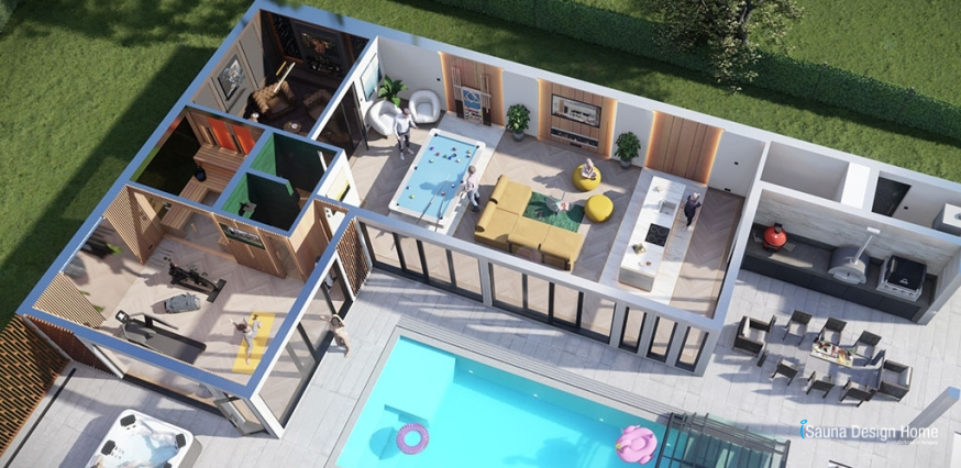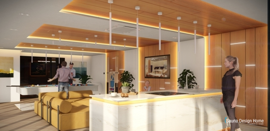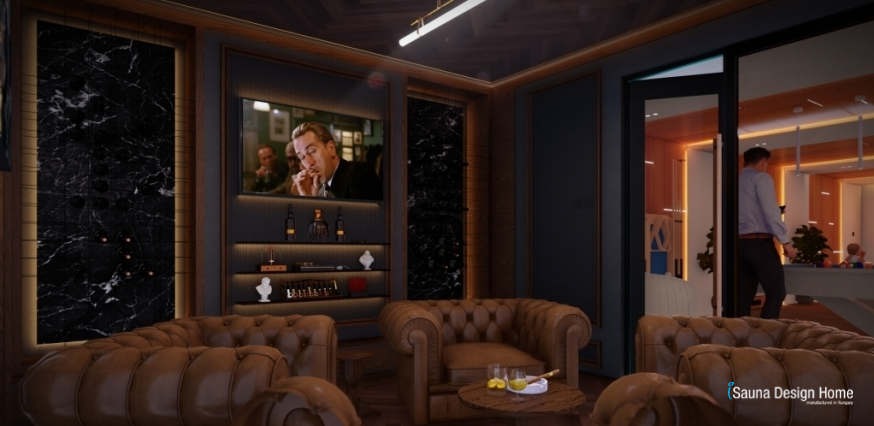 Pri navrhovaní interiéru dostali prednosť klientove sny, ako napríklad exkluzívna cigarová miestnosť s kompaktnou eleganciou a profesionálnou klimatizáciou, kde môže Kálmán v uvoľnenej atmosfére organizovať svoje obchodné stretnutia alebo si dokonca sadnúť a relaxovať sám. A Ediným želaním bola funkčná posilňovňa, ktorá by výrazne prispela k jej zdraviu. Tá je prioritou pre všetkých členov rodiny, preto sme v budove navrhli komplexnú saunu. Infračervená sauna pre deti a tradičná fínska sauna pre dospelých v kombinácii s 2000 rokov starými himalájskymi soľnými tehlami, ktoré majú spolu výnimočné pozitívne fyziologické účinky.