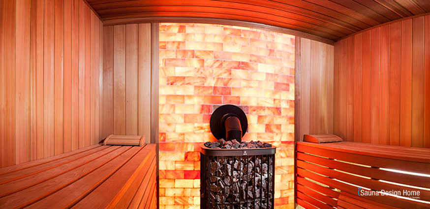 Vysoko výkonná pec do sauny sa nesmie dotýkať dreva, preto bolo ideálnym riešením postavenie himalájskej soľnej steny za saunovú pec na drevo. Terapické účinky himalájskej soli dobre zvyšuje teplo pece a vysoká vlhkosť.