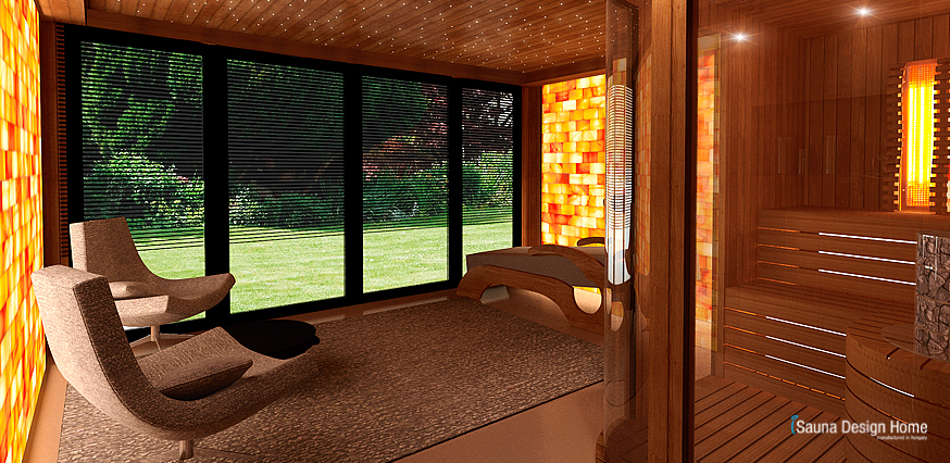 Všetky prvky wellness miestnosti sú vyhotovené z kanadského červeného cédru od stropnej konštrukcie až po police. Tmavohnedý odtieň a sladká vôňa prináša zvláštnu atmosféru do wellness miestnosti. Wellness miestnosť má navrhnté okná tak, že z odpočívadla vidieť krásu záhrady, ako sa deti hrajú a v zime sa dá vỳjsť a poválať sa trocha v snehu po jednom potnom kúpeli. Na spokojnosť nášho klienta sa odteraz nemusí rozčuľovať a prispôsobovať k inỳm. Zážitok zo sauny, liečivỳ účinok na zdravie himalájskej soli, pohodlie priestrannej wellness miestnosti a osviežujúcej masáže sa dajú vychutnať spolu vo vlastnom domove.