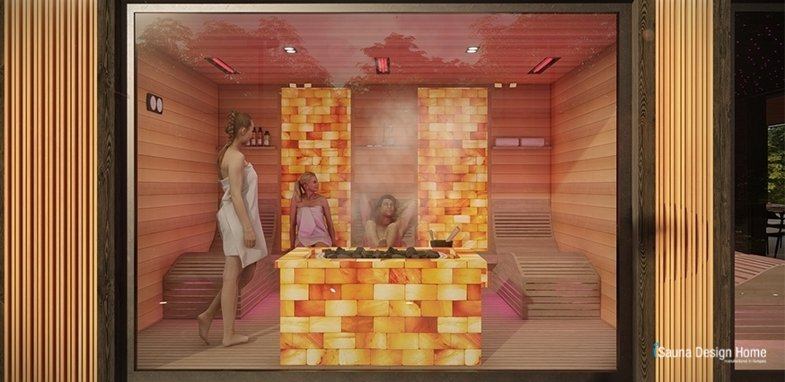 V priestore kombinovanej sauny si priaznivé účinky horúcej fínskej sauny a detoxikačné účinky infrasauny môže vychutnať aj širšia rodina a partia priateľov. V kombinovanej saune je umiestnená aj himalájska soľná stena postavená okolo saunovej pece, ktorá ešte intenzívnejšie pôsobí na dýchacie cesty a pokožku. Po saunovaní je osvieženie zabezpečené vo vodnom bloku, kde si v pohodlnej šatni možno odložiť uteráky, župany a saunové oleje potrebné na saunovanie.
