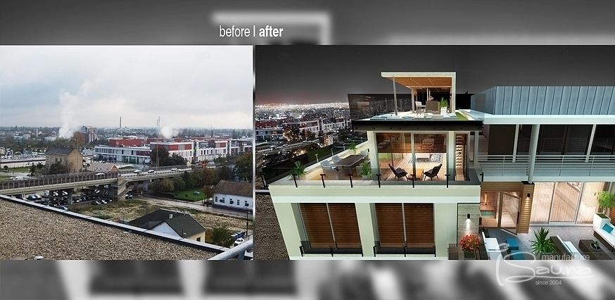 Znovu nás vyhľadali s jednou odvážnou zákazkou plánovania sauna wellness terasy. Miesto realizácie je v prestížnej a príjemnej časti mesta v blízkosti Dunaja s vynikajúcim vyhľadom na mesto.