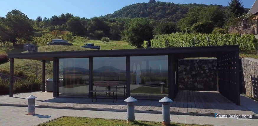 Saunový dom umiestnený vo vinohradníctve je ideálnym doplnkom vinárskej turistiky alebo teambuildingov.