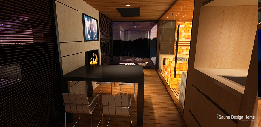 Kombinovaný saunový dom maximálne vyhovuje všetkým požiadavkám. Je v nej infrasauna, fínska sauna, parná sauna a himalájska soľná terapia. Okrem toho sú jeho súčasťou sprcha so šatňou, oddychový priestor, kuchynka s jedálňou, televízor a posuvné sklené dvere.